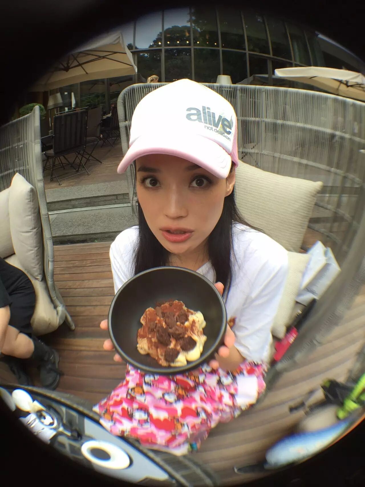 哈哈,女神一脸“我重点在吃还是在拍啊,有点懵”