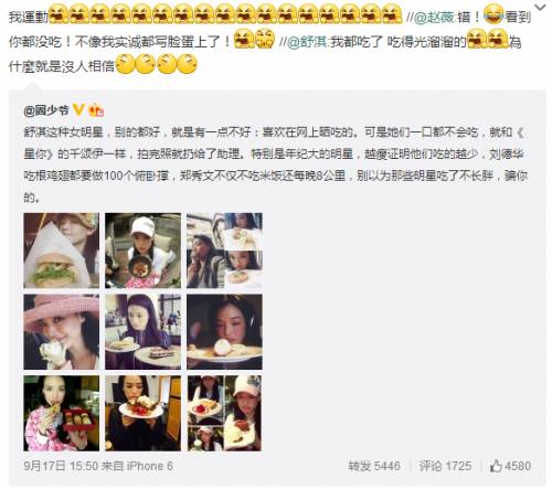 舒淇在微博晒吃的程度曾频频上新闻头条,大家都称呼女神为“中国版千颂伊”。为吃常常抛掉“塑形”的代价,给自己的胃口一次又一次放肆的机会,那她到底是真吃还是假吃呢?以下让我们来看看: