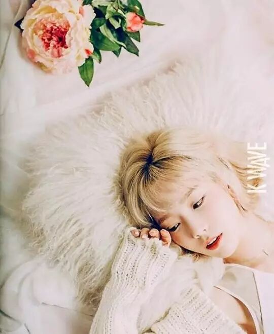 韩流杂志K WAVE最近请到太妍拍摄画报,画报里放着玫瑰花和太妍一起躺在床上,让穿着白色衣装画上淡妆的太妍,散发着清纯美。