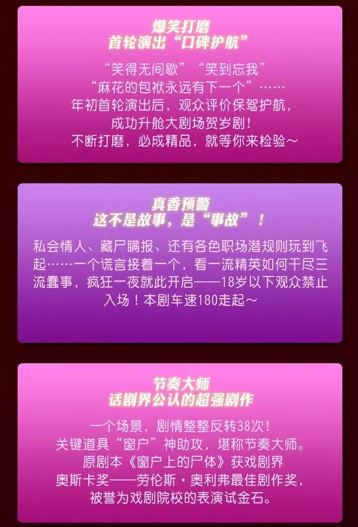 阿加莎本人自评作品排名第三、读者点评阿加莎作品排名第二、官网点评阿加莎作品排名第四。能够获得如此好评的剧怎么能不拉着男票去看?真人版杀人游戏,谋杀上演在今天。