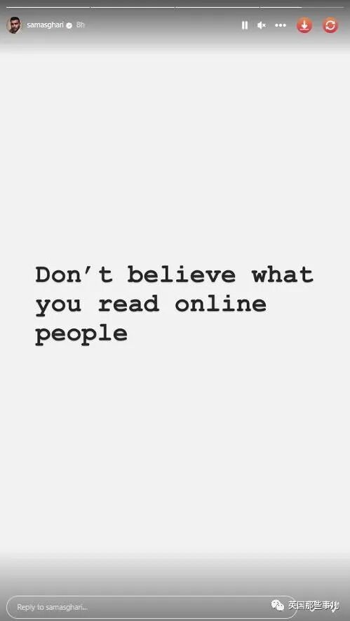 第二天,阿斯加里在IG上发了一条动态,意思是说“别相信你在网上读到的东西”,可是他既没具体解释这话到底是什么意思,也没回应媒体的问题,很是谜语人。