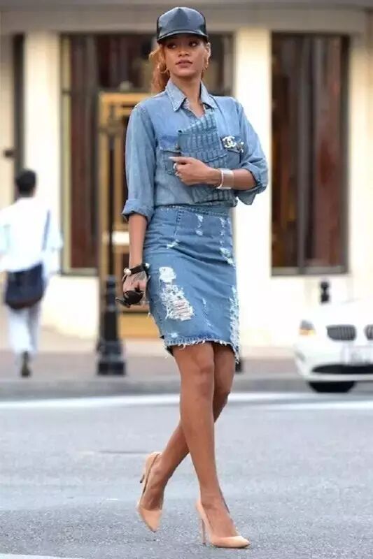 破洞牛仔裙就比普通的牛仔裙更有生机,还多了一丝小叛逆,很适合蕾哈娜。