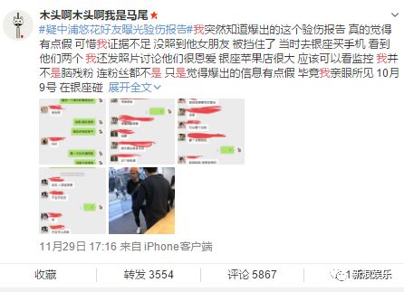 后来又有网友说10月9日,也就是中浦悠花声称遭到家暴的第二天,在银座见到过她和蒋劲夫。
