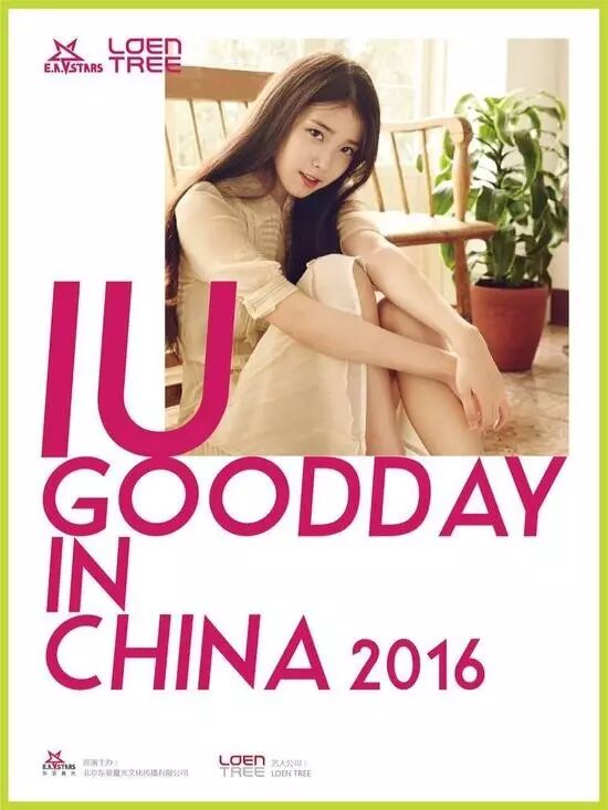 5月25日根据中媒消息,歌手IU将从7月分开始在中国举办巡回公演“Good Day in China 2016”,预计将与广州-长沙-南京-重庆-武汉-成都-深圳等地的粉丝们见面。据悉IU不仅将演唱自己的热门单曲,还特别为中国的粉丝们准备了中文歌曲。另外由IU搭档李准基-姜河那-洪宗玄-EXO伯贤-南柱赫-志洙出演SBS新水木剧《步步惊心:丽》正在拍摄中。