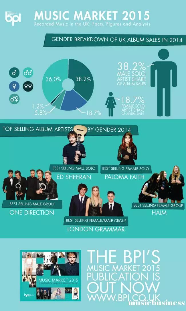 BPI最新的《2015年音乐市场》中,出现了一项根据2000年至今英国的前一千名畅销唱片记录得出详细的男女歌手分析,这篇关于音乐市场的深度分析报告目前已经公开发表。