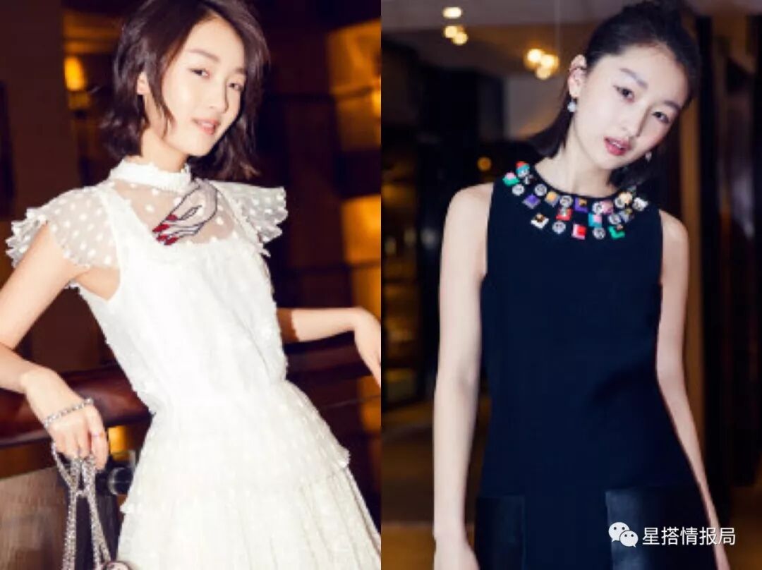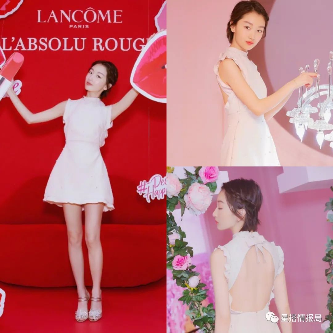 而且周冬雨特别喜欢穿小圆领的小礼服,这样会显得人没那么单薄~她也很喜欢露背的款式,背部薄就很有少女感~