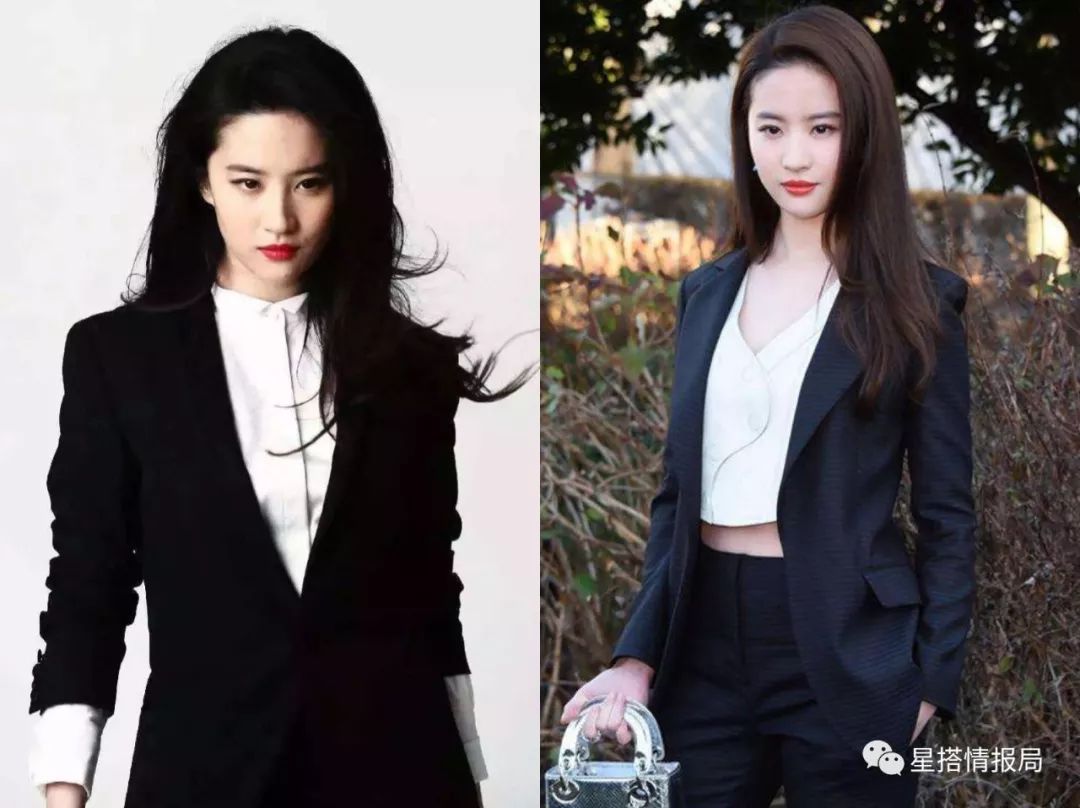 来看看蒋欣的正确打开方式~面料挺括的西服套装很好地修饰了肩部线条,而且攻气之外,多了女人味儿,是那种包身蕾丝给不了的荣耀~