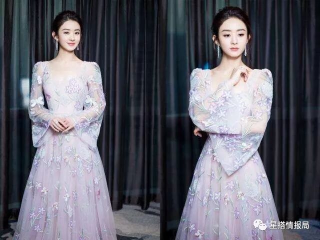 赵丽颖也是典型的窄肩,骨架很细,所以穿这种简单的吊带款礼服,会很容易穿成大头娃娃,一定一定注意头肩比!