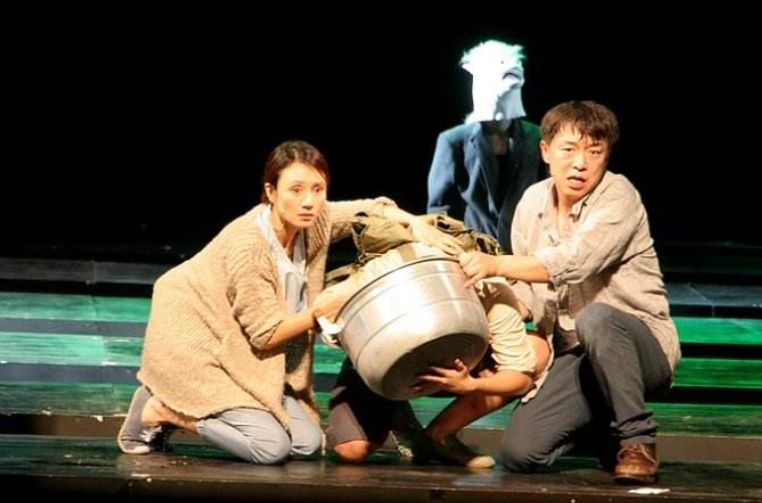 袁泉和黄渤在排演《活着》