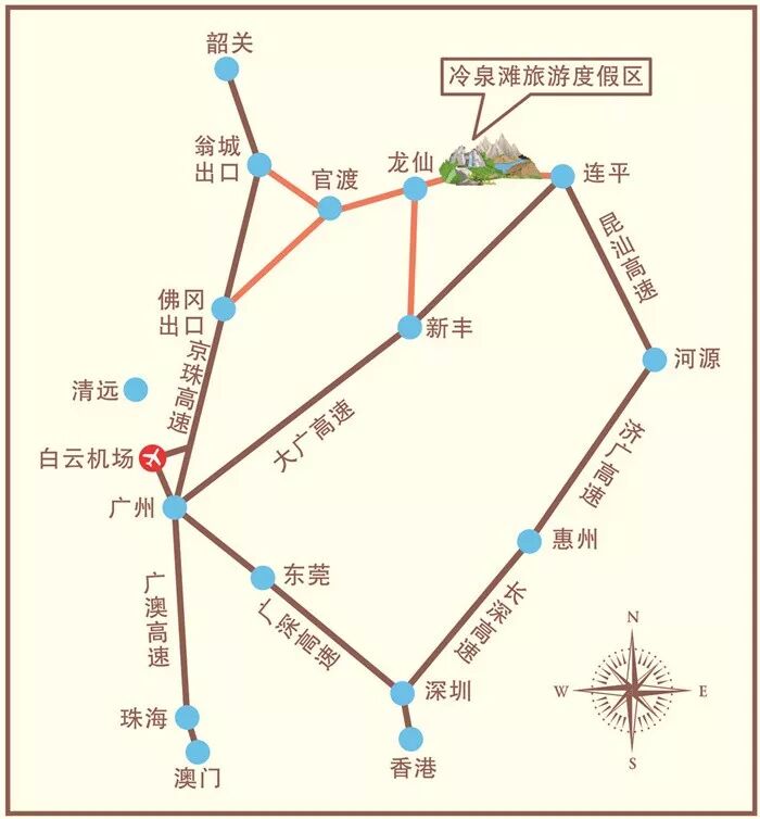 线路1:东华山风景区——午餐——中国兰花基地、粤台农业试验区或冷泉滩戏水