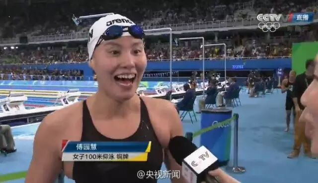 里约奥运女子100米仰泳比赛,傅园慧夺得一枚铜牌!再次创造个人最好成绩!傅园慧,真棒!她说“昨天把洪荒之力用完了,今天没有力气了,手太短了,才比亚军慢0.01秒。”,但还是好棒不是吗?可爱!