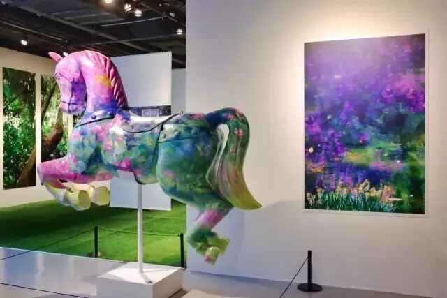 整个展馆有好几匹这样的马,这些马身上的彩绘图案均是钟汉良的摄影作品。