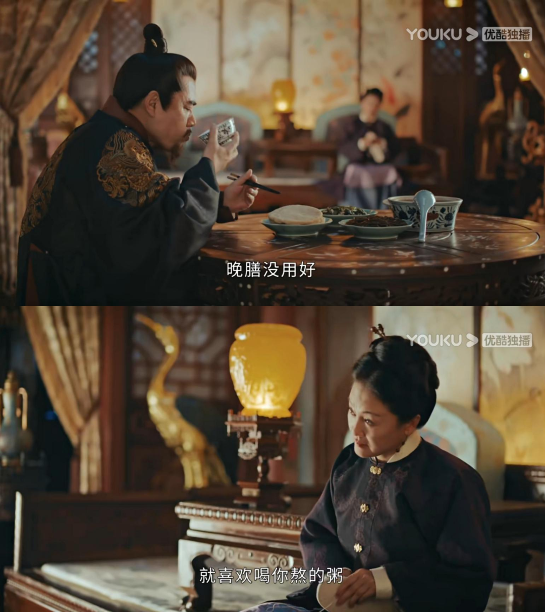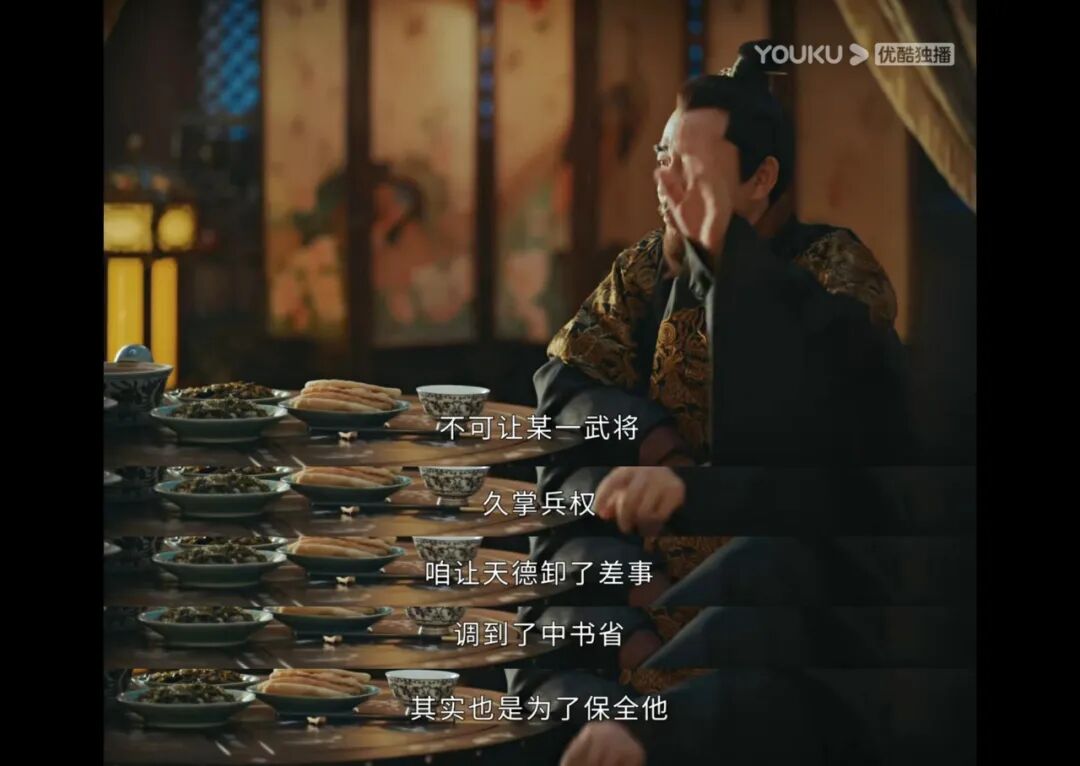 陈宝国在《山河月明》中出演的明太祖朱元璋也有这种严肃智斗,把群臣和儿子紧紧拿捏在手里,例如一边吃饭一边把手下人的升职降职给安排了。