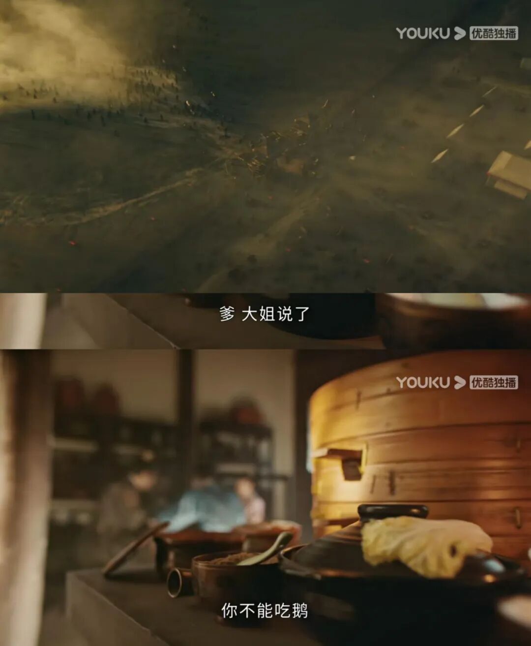 一是节奏。从目前播出的三集来看,剧的节奏紧凑,出场人物众多,事件的推进也很快。在严肃的事件之后接上轻松的事件加以调和,前半段还在演战争大场面,后半段能接上徐达偷偷吃烧鹅被女儿发现,还不太出戏,看起来是很愉快的。