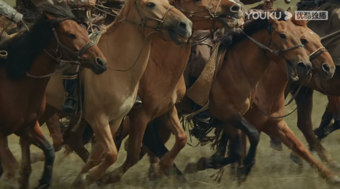 二是实拍场面,战争场面虽然用了CG,但实拍部分也足见用心。战马奔跑的样子能看到优美和力量感,比单纯的射箭打仗的场面要有氛围得多。