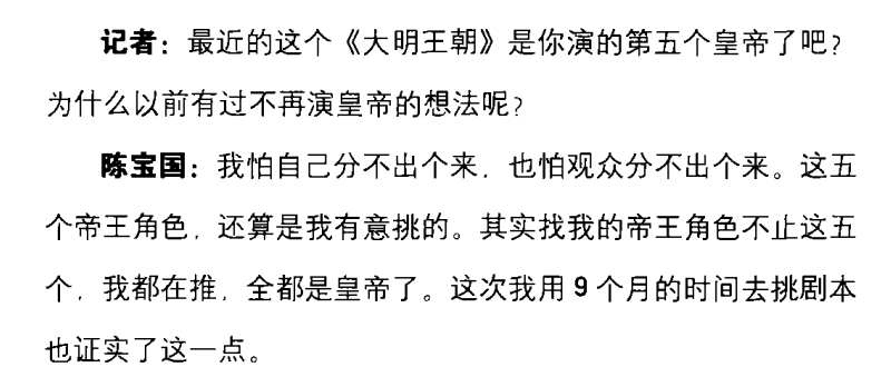 人人都有关于皇帝的想象,要把不止一个皇帝,且是数个不同年龄、不同朝代的皇帝演出韵味,演得让大多数观众都认可,简直难如登天。但,陈宝国老师做到了。