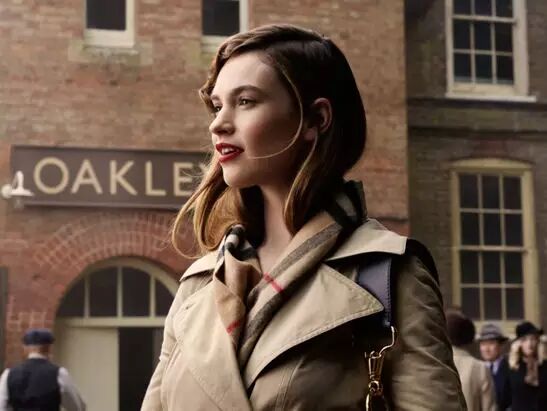 而片子里女飞行员所穿的飞行服,也是Burberry1937年同款,同样是在在高空防寒防风的嘎巴甸面料。不过影片为了增加戏剧性,也把Lily James扮演的女飞行员与Thomas Burberry 本人安排在了一起,并让二人互生情愫,并导致了正房的出走。。。