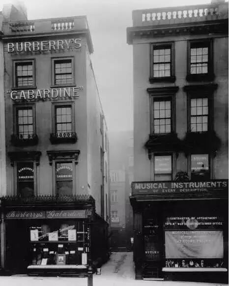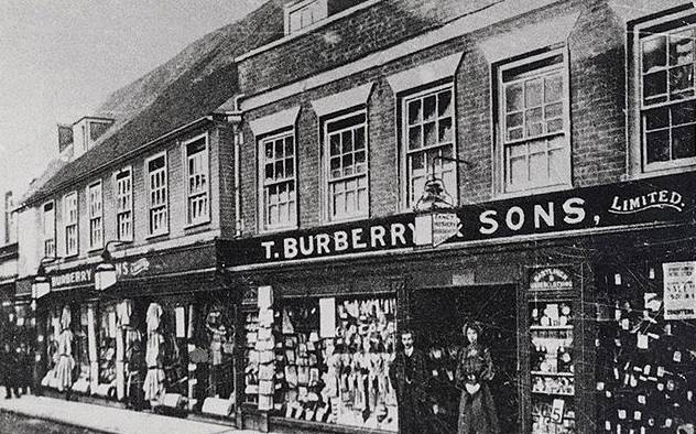 1856 年,年仅 21 岁的英国青年 Thomas Burberry 已完成了学徒生涯并在英国的Basingstoke 创立了 Burberry 品牌,最开始做的是户外服装的业务。作为一名认真、聪明和专业的年轻的创业者,他用优质创新的面料和不俗的外套设计迅速为自己赢得了众多忠实顾客。来看看他不同时期的店铺: