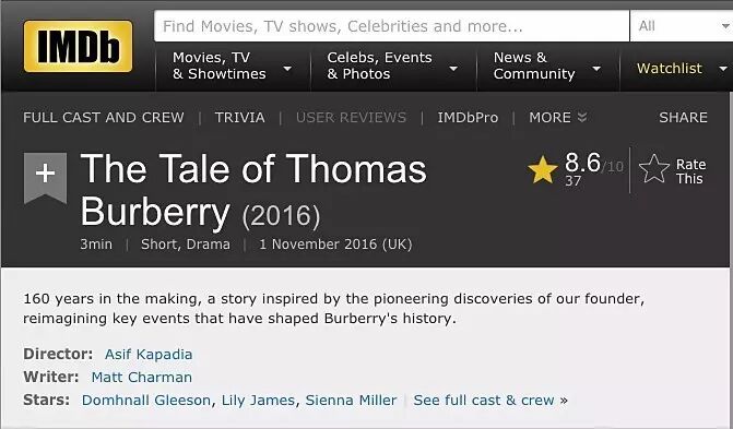 然鹅~ 就是这样一条只有3分30多秒的广告,Burberry 竟砸了一千万英镑,硬生生地把它拍成了史诗级大片。。