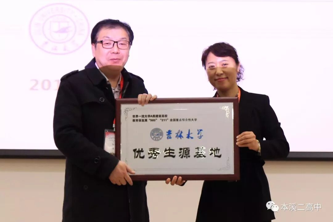 4月19日至21日,本溪市第二高级中学孙浩校长应邀赴长春参加了2019年吉林大学百名优秀生源基地中学校长吉大行。孙浩校长出席了20日上午的百名校长大会,听取了孙正聿教授等国家级名师、院士的学术报告,参加了20日下午在吉林大学中心校区举行的分组交流,会上,吉大校领导亲自将“吉林大学优秀生源基地”的牌匾授予本溪市第二高级中学。会议期间,孙浩校长还观摩了由吉林大学大学生艺术团演出的专场音乐会,赴中车长春轨道客车股份有限公司复兴号高铁动车组生产制造车间参观学习。