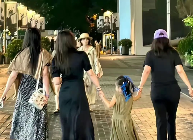 她们经常像闺蜜一样手拉手逛街,还带着朱珠的女儿,画面温馨得像一家人。