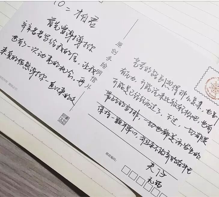 粉丝PO出他回复的明信片,字迹居然清秀得不要不要的。