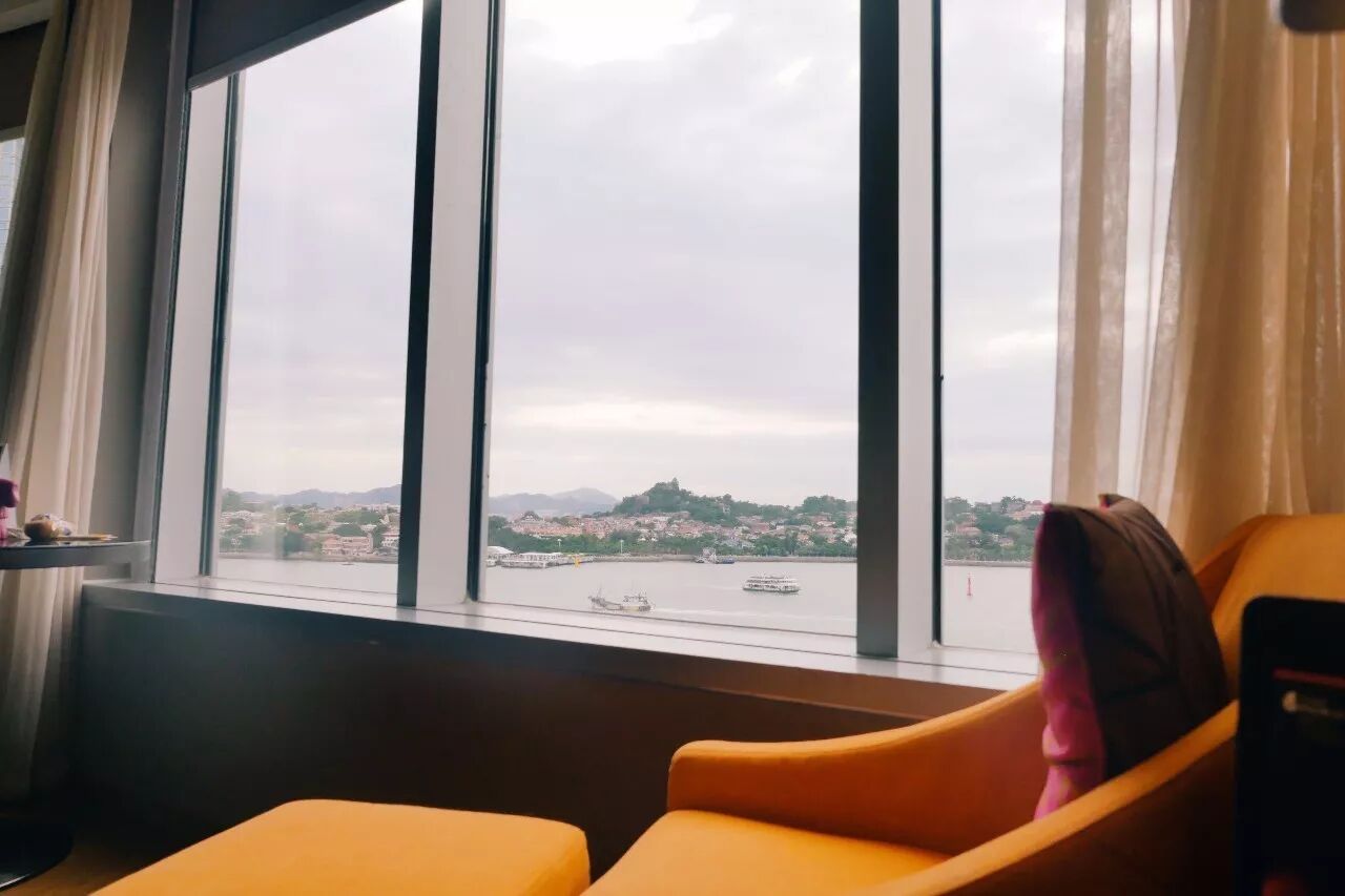 入住房间时,插入房卡,电动窗帘缓缓升起,上帝视角下的鼓浪屿的全景浮现在我眼前时,心里突然变得很暖。