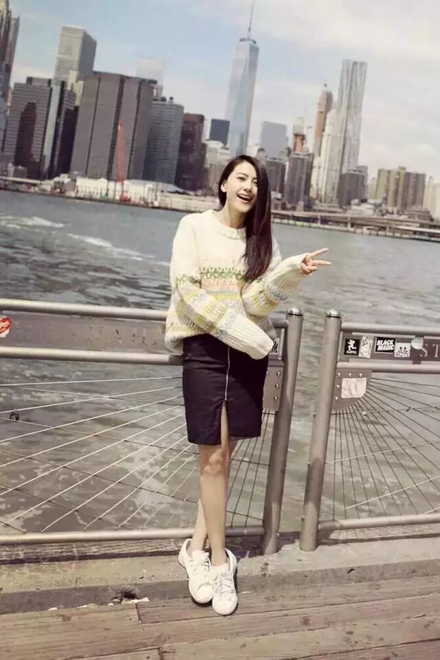 你和女神高圆圆间就差一双小白鞋!小白鞋搭配拉链裙依旧清新。