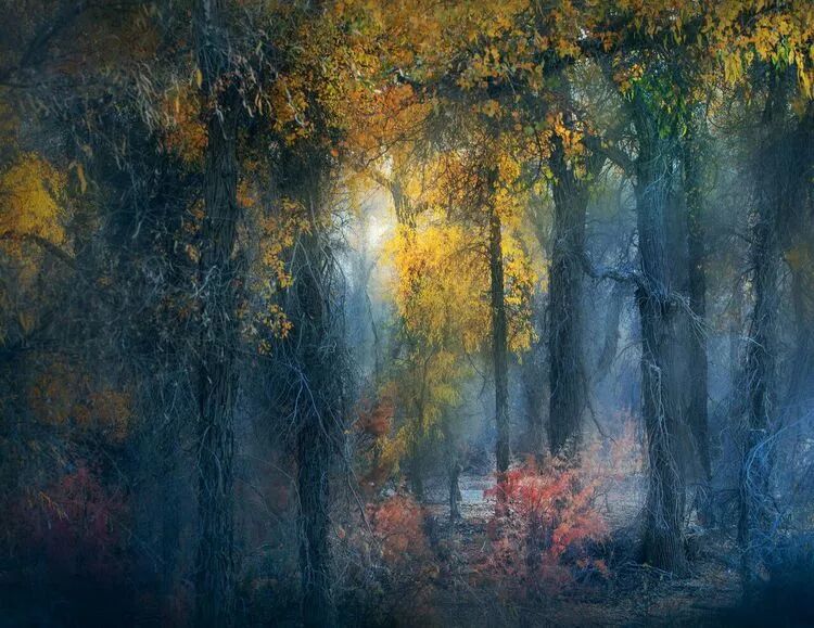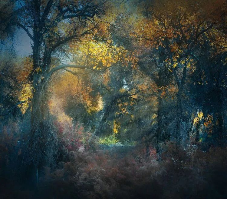 我们脚步轻轻,快门轻轻,目光轻轻,思绪轻轻,生怕打扰这凝滞的美好,生怕惊动树上唱歌的飞鸟,生怕吓着在林中吃草的羊群,我们只能用目光轻轻抚摸这美妙的一切,生怕自己的莽撞会打破这梦幻,从沉醉中醒来。