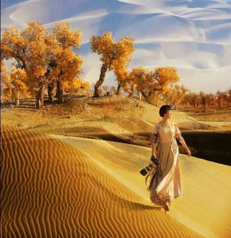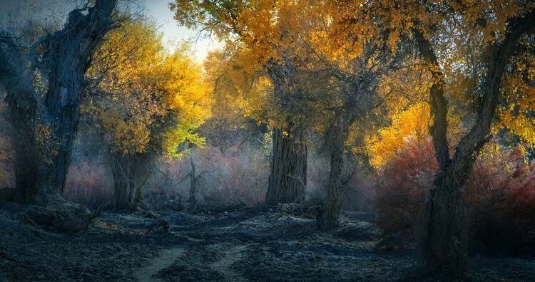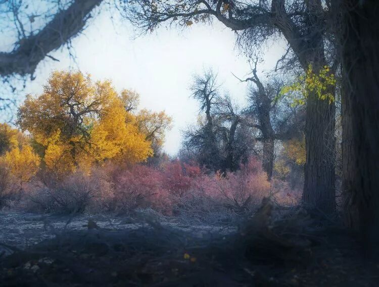 深秋,步入漫漫黄沙包围的腹地,走进被金色染黄的胡杨林。