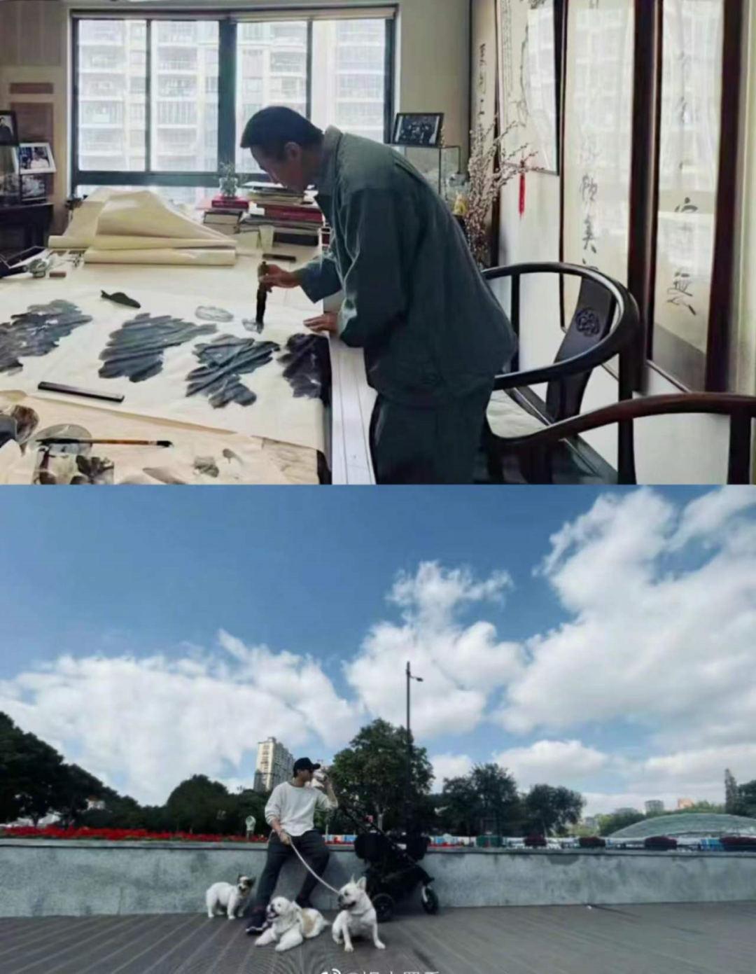 看孙俪晒出的邓超最近的日常状态,又是遛狗又是练字,