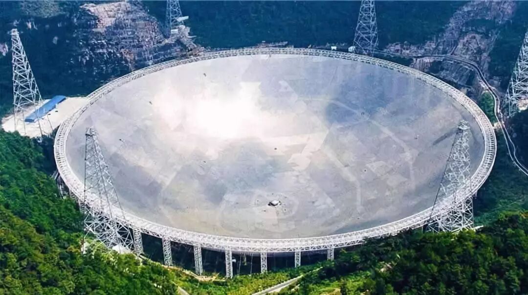这是目前全世界最大、性能最先进的射电望远镜,口径达到500米,接收面积相当于30个足球场大小。