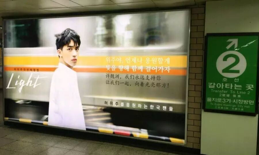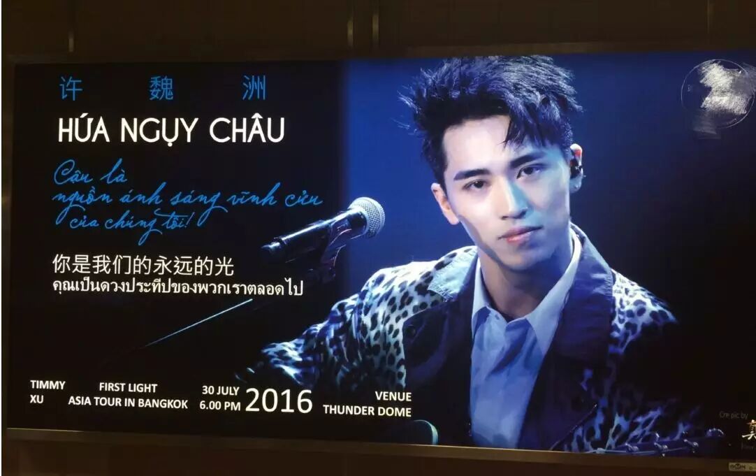 韩国和泰国的粉丝们为宣传洲洲的演唱会,还在地铁为他打广告应援。
