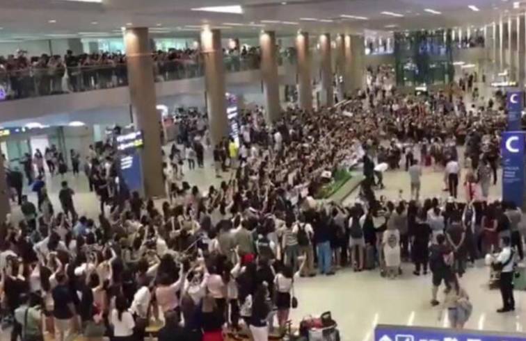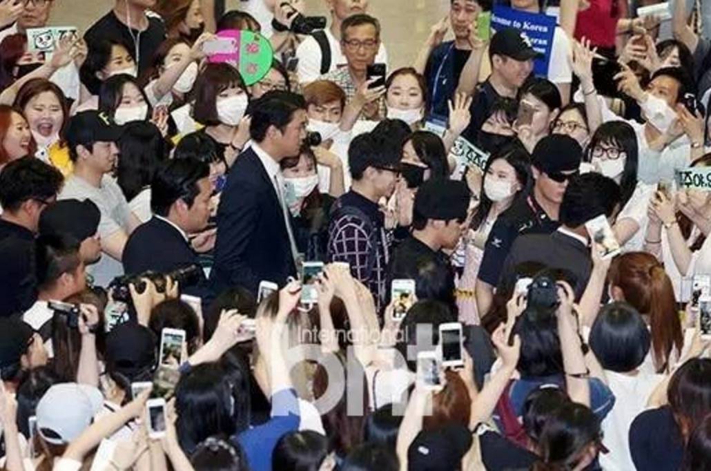 6月底到韩国仁川机场时,下飞机一看,简直吓坏了——竟有500多名粉丝接机!密密麻麻地挤满了机场通道!水泄不通!