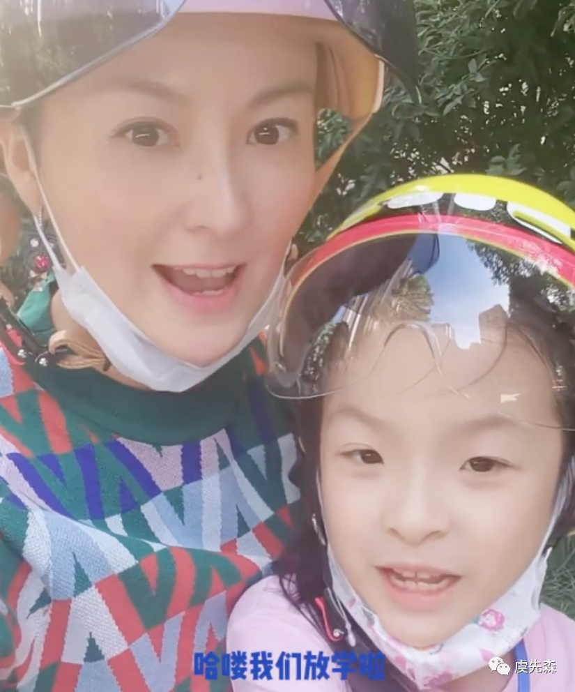 在她女儿上学后,她每天还非常接地气的骑着电瓶车接送孩子,一点偶像包袱也没有。