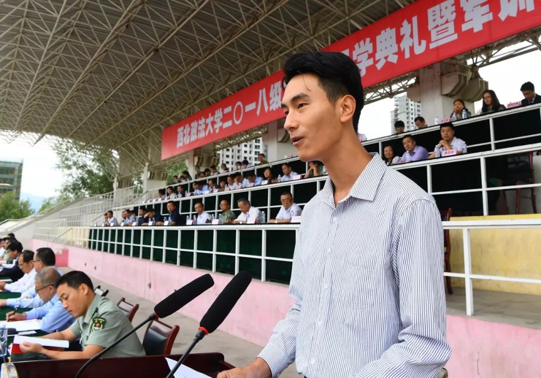 刑事法学院的付玉明教授代表全体教师欢迎来自五湖四海的青年学子相聚西法大。他希望2018级新生遵行“博、专、述、行”四字箴言,追逐梦想,与法同行,谱写属于自己的法治故事。