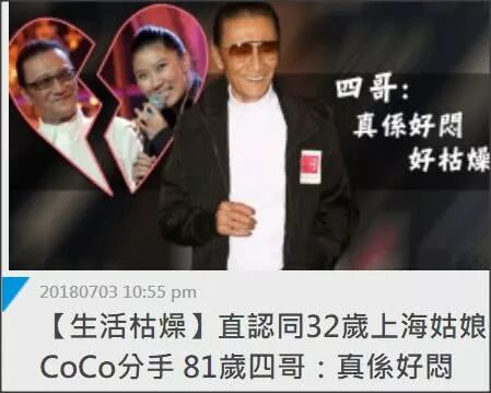报道这样写——此前一直有传年过八十的谢贤与女友CoCo分手了,昨晚谢贤承认没有谈恋爱,还自曝孤独的老人生活很枯燥。分手消息也是秒上热搜。