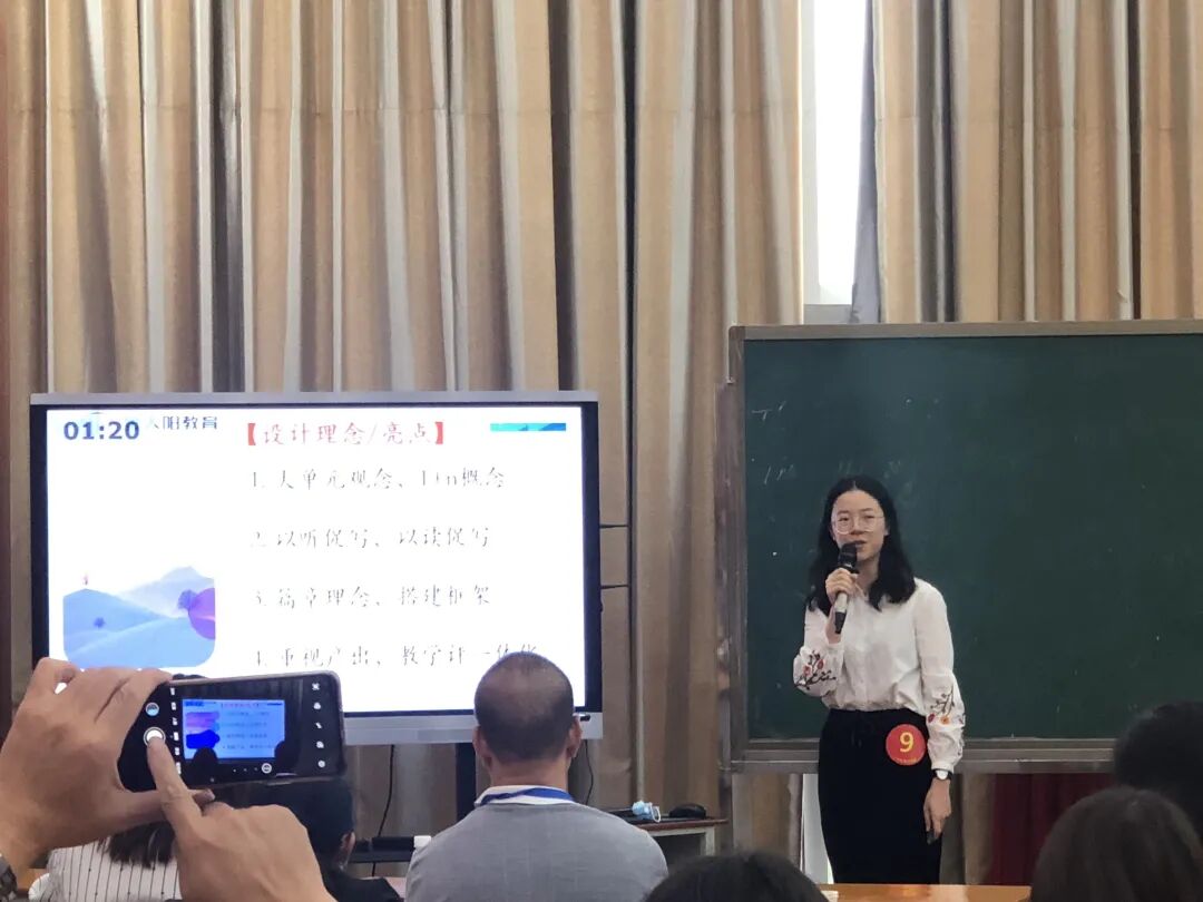 比赛分为说课和赛课两个环节,在第一轮的说课环节中,夏颖老师落落大方,指挥若定,围绕教材、学情、教学目标、教学重点难点、教学过程、板书设计和教学亮点等几个方面展开说课,以高分优势顺利进入决赛环节。