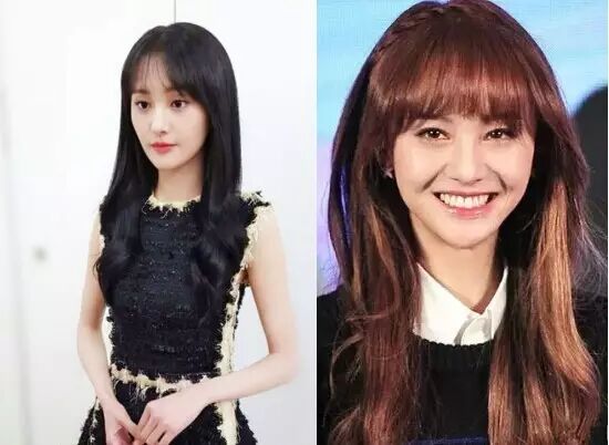 黑发的angelababy显得脸色太暗,而咖色系的头发就衬得很有气质了~