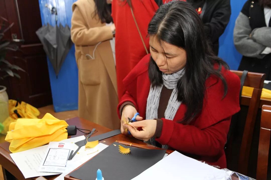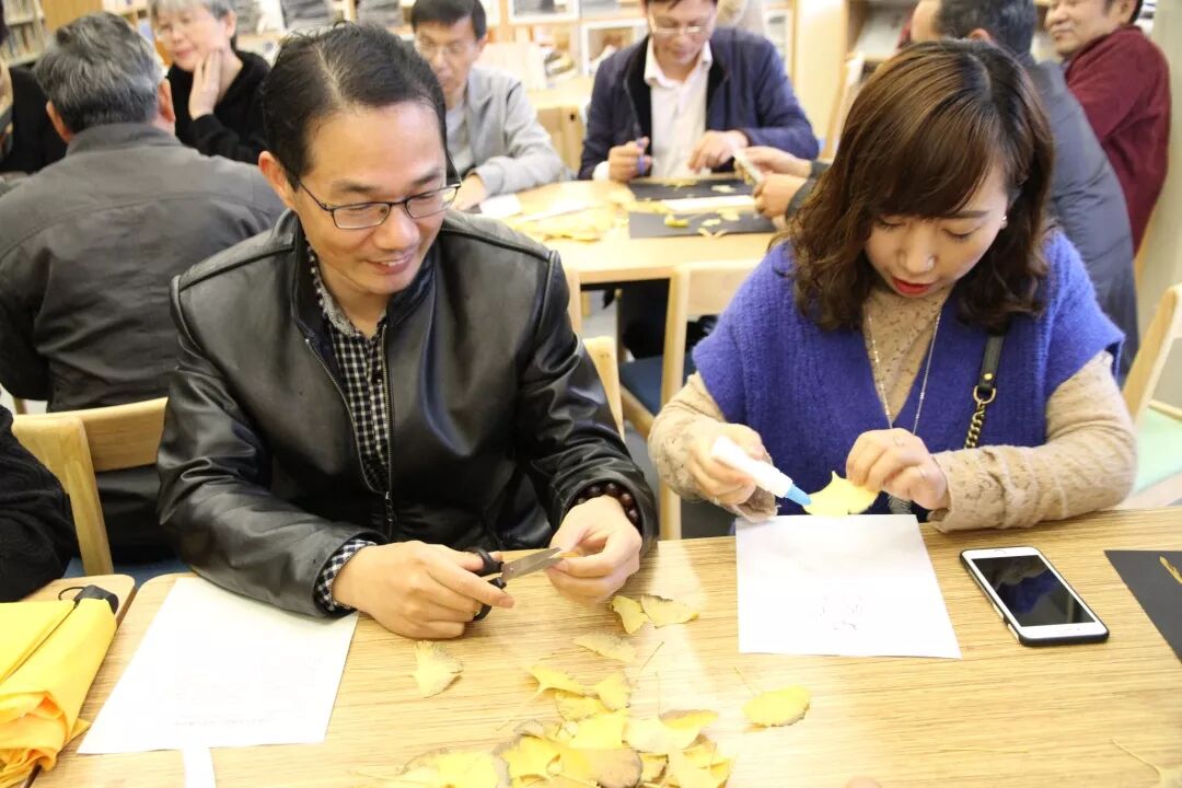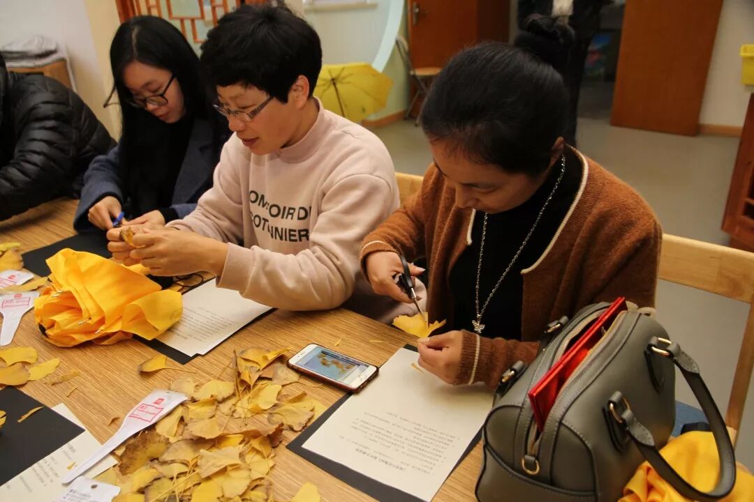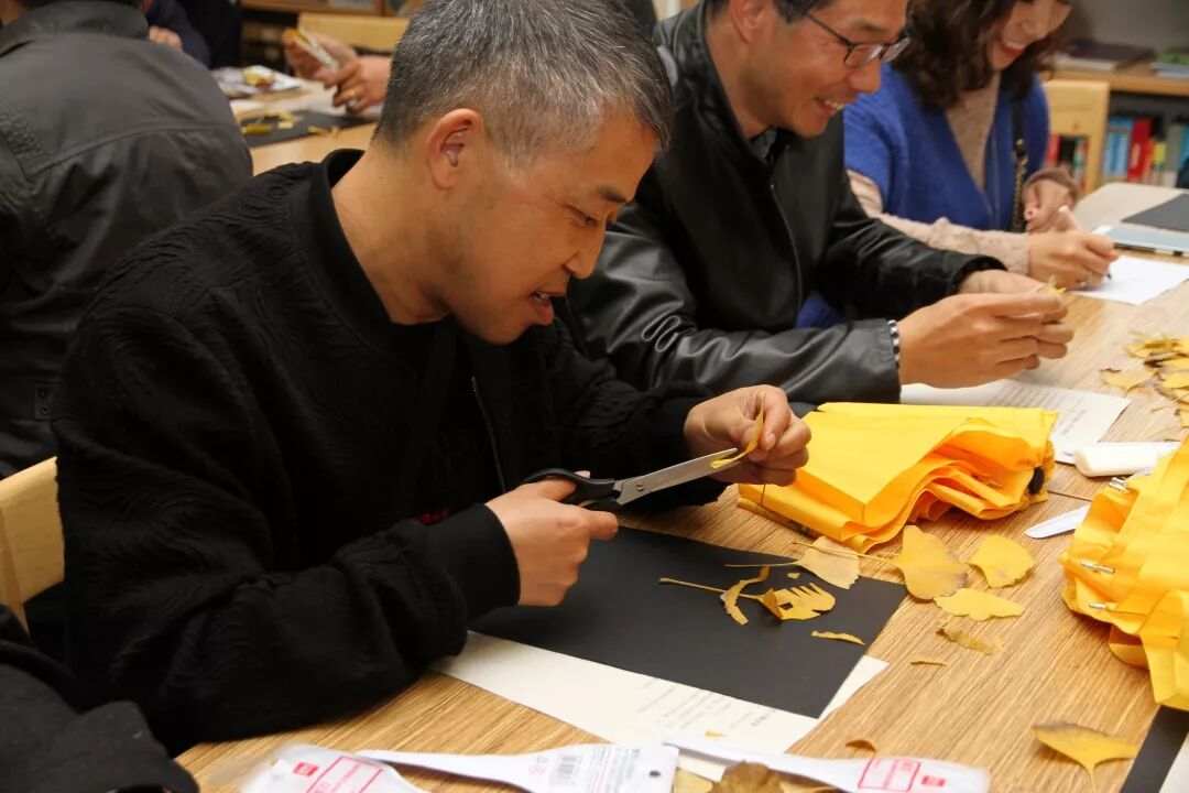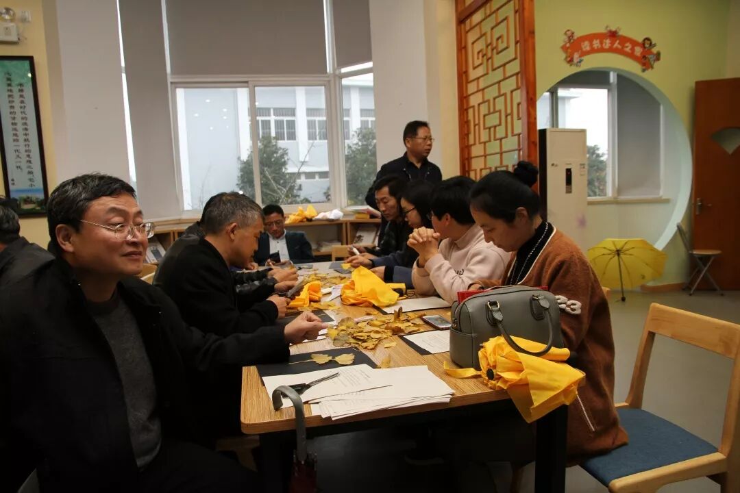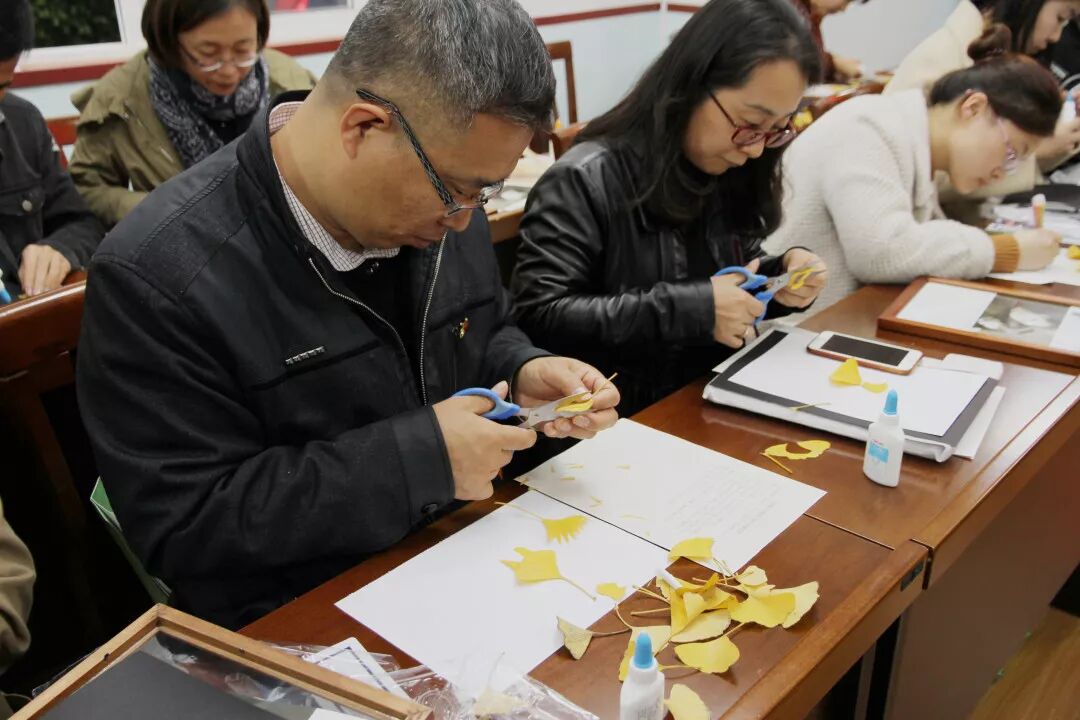 为了进一步感受银杏文化,黄姑实验学校的领导和老师们一起参加了学校举行的“我心中的银杏——银杏叶画”社团活动。大家先从美术老师胡佳艳精心制作的《银杏叶拼贴画操作》视频了解了如何进行创作,接着分组参加了“求真社”“乐善社”“尚美社”三个社团的活动。大家以“银杏叶拼贴画”为形式、“我心中的杏园”为主题进行创意表现。通过创作体验,也使他们感受到了干巷学校浓浓的银杏文化氛围。