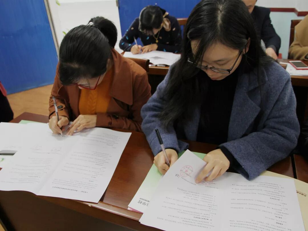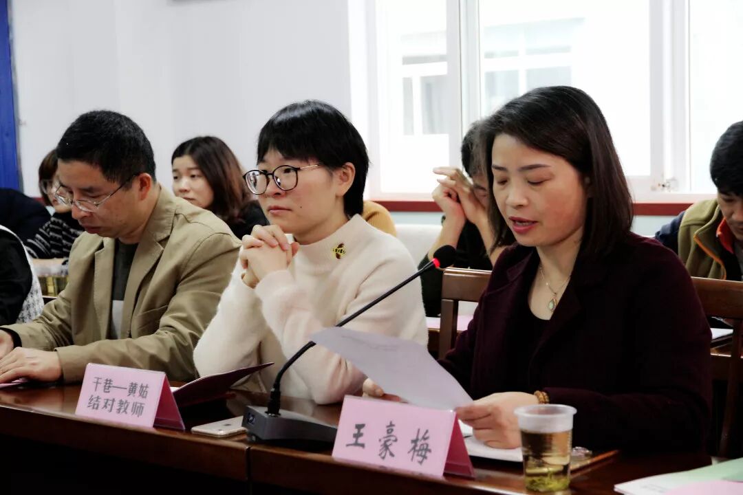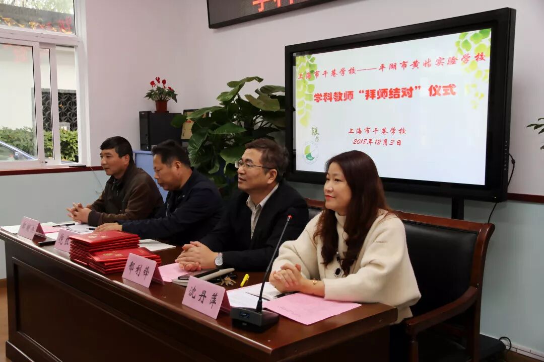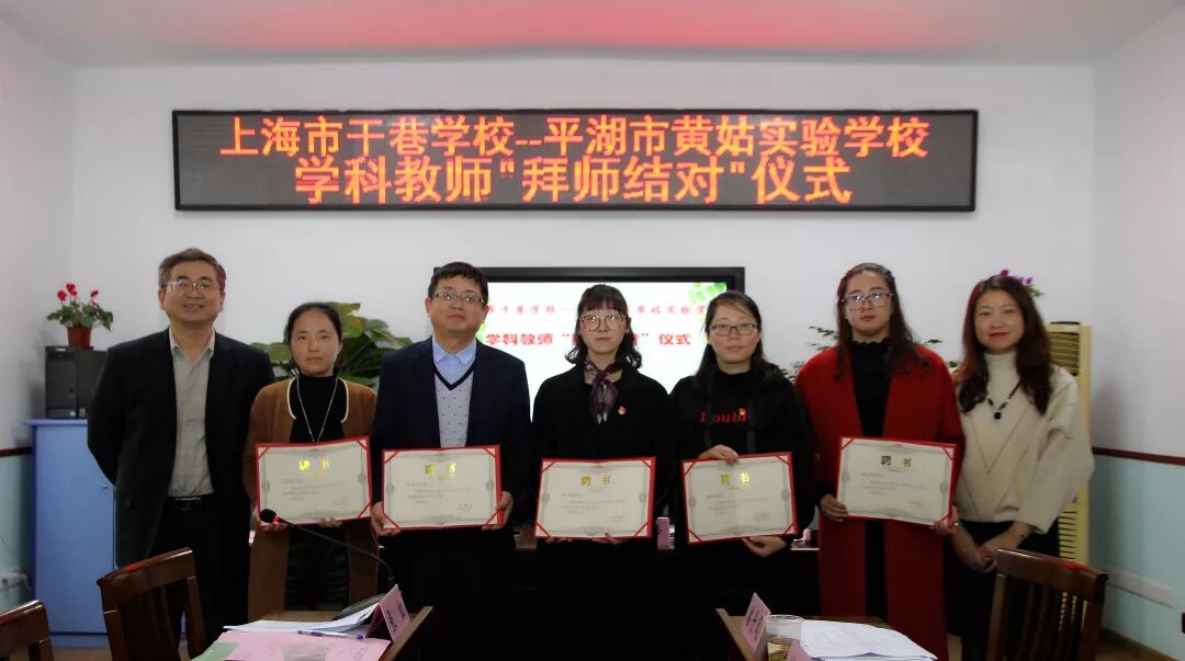 下午1点,两校举行了“拜师结对”仪式。黄姑实验学校聘请了干巷学校语文、数学、英语、体育、道德与法制以及美术六门学科共9位教师为指导教师,干巷学校聘请了黄姑实验学校语文、科学两门学科以及德育共5位教师为指导教师。