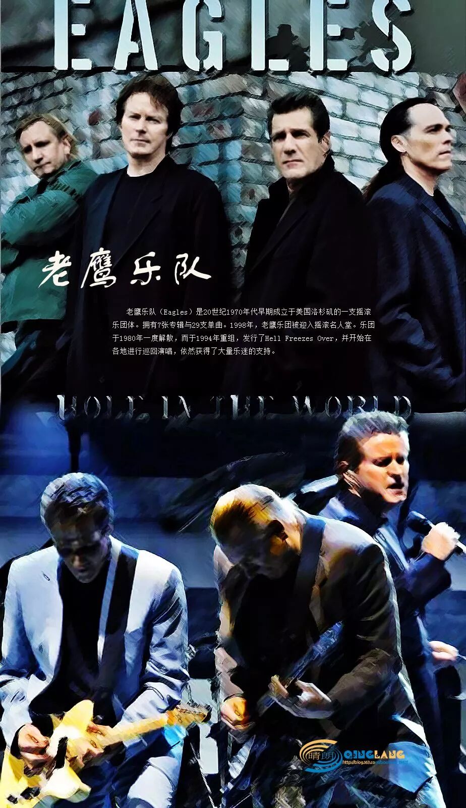 喜爱英文歌曲的人没有几个不知道“Hotel California”(加州旅店)和“Take It Easy”,这两首空前绝后的钻石级金曲是20世纪最著名的流行音乐作品,而造就它们的就是以美国国鸟命名的乐队Eagles。Eagles是美国老牌的摇滚乐队,他们的成功之处是在于把摇滚、流行和乡村音乐很好地结合在一起,他们的音乐符合各个层次的欣赏者,成了名副其实的“大众偶像”。