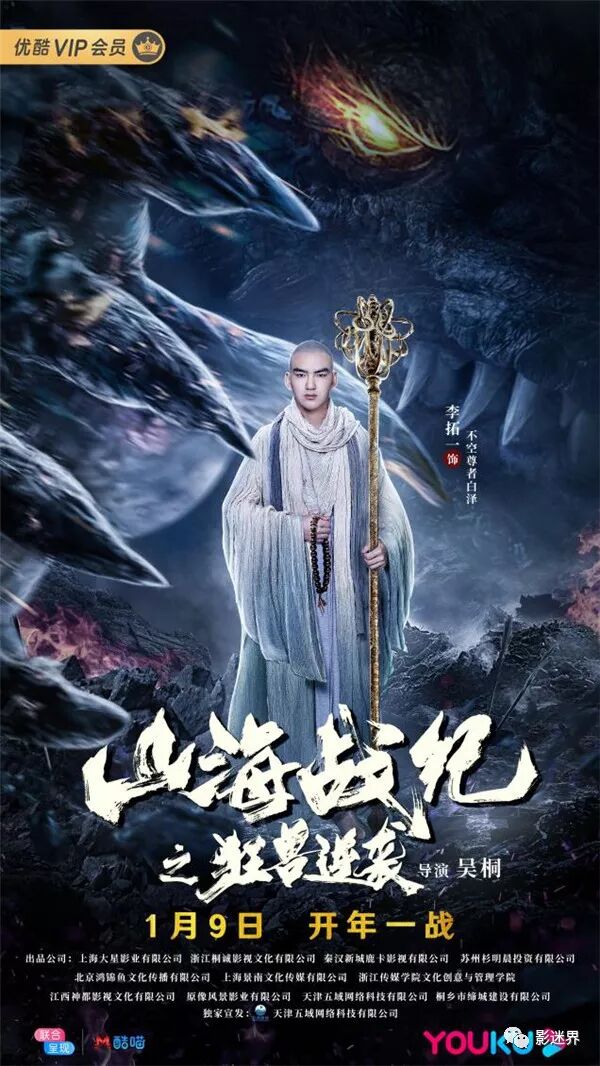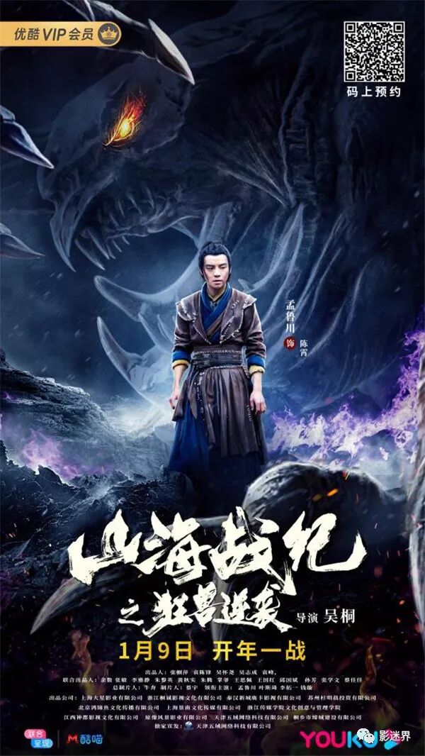 据悉,这部由牛奔担任总制片人,蔡宇担任制片人。余数、张敏、李雅静,朱黎英、黄秋实、朱腾、掌爷、王思佩、王国红、邱国斌、孙芳、张学文、蔡佳佳联合出品的电影《山海战纪之狂兽逆袭》将在1月9日优酷平台全网独家上线。影片由上海大星影业有限公司、浙江桐诚影视文化有限公司、秦汉新城鹿卡影视有限公司、苏州杉明晨投资有限公司、北京鸿锦鱼文化传播有限公司、上海景南文化传媒有限公司出品,浙江传媒学院文化创意与管理学院、江西神都影视文化有限公司、深圳市原像风景影业有限公司、天津五域网络科技有限公司、桐乡市缔城建设有限公司联合出品,天津五域网络科技有限公司独家宣发。即刻预约,开启2020年第一场玄幻世界之旅。