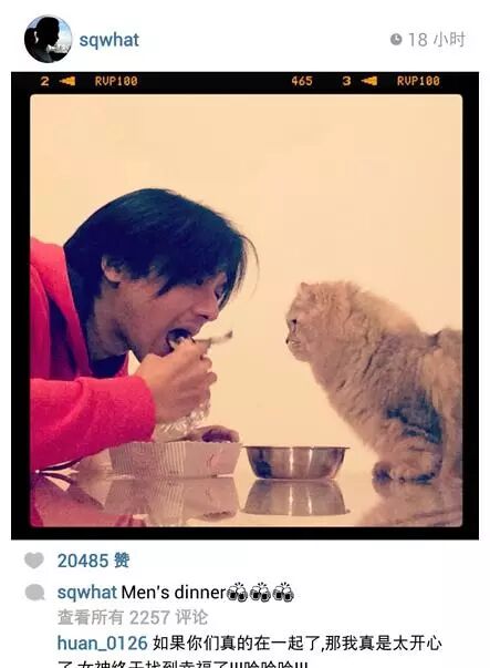 2015年,舒淇晒出冯德伦与爱猫对望吃饭的照片。而下午她再放上爱猫照,留言︰“你怎么想的……”立即引起粉丝关注。
