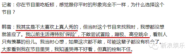 而且在采访中韩雪直言她原本是不太喜欢上真人秀的。