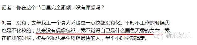要知道韩雪在节目里是一点妆也没有化,因为她说自己本来就没有什么偶像包袱。(看来真的是要进军表情包了)