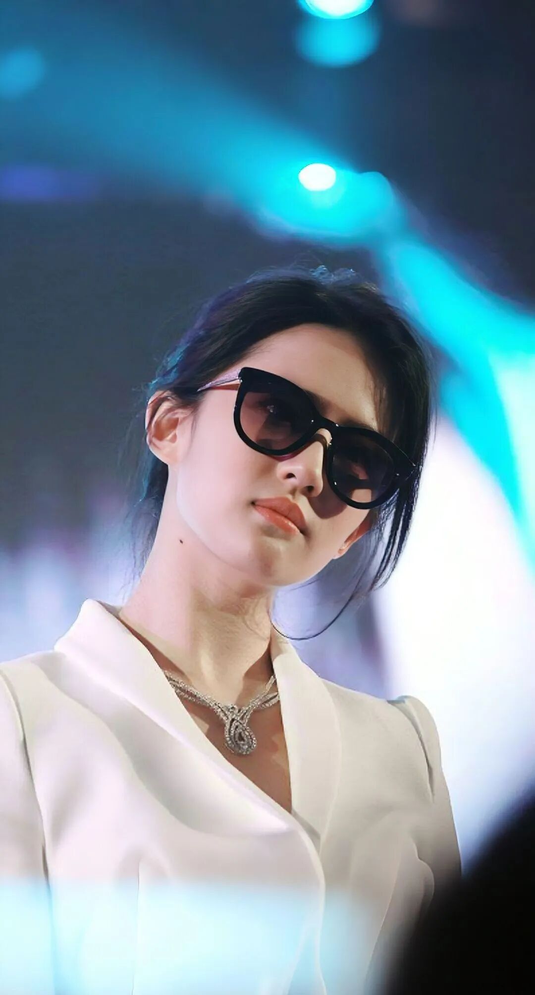 刘亦菲转身戴着一副黑色墨镜,头往左边倾斜,那种酷飒自由的状态,瞬间点燃观众和粉丝的热情。