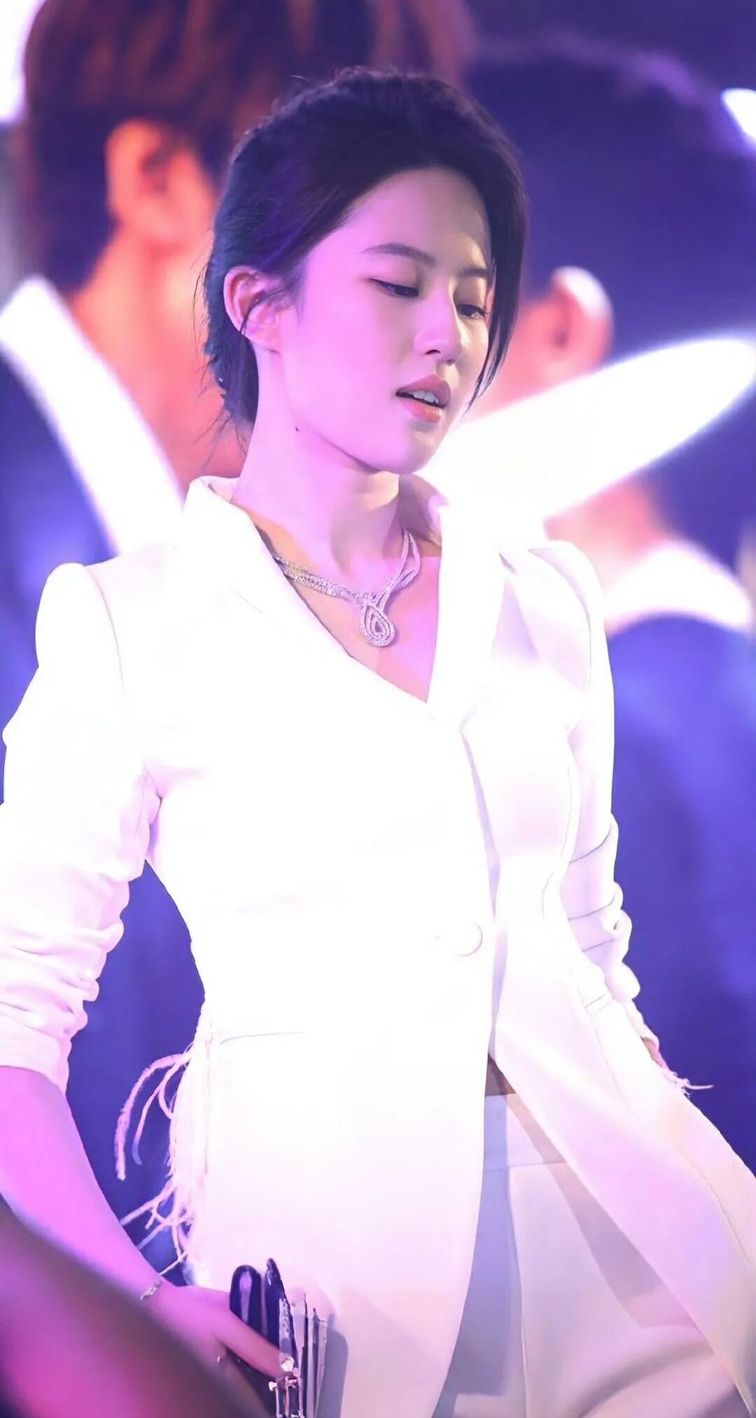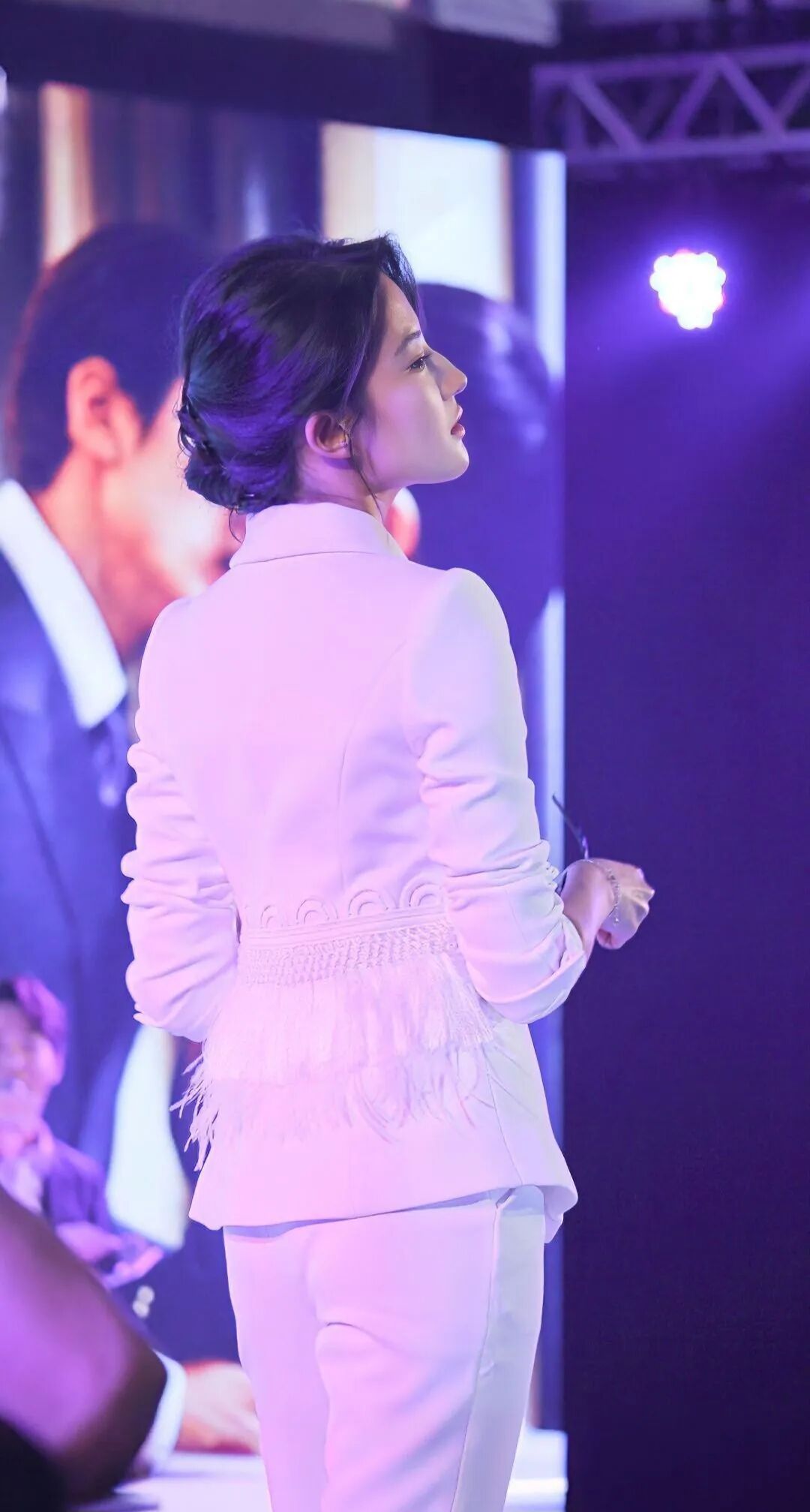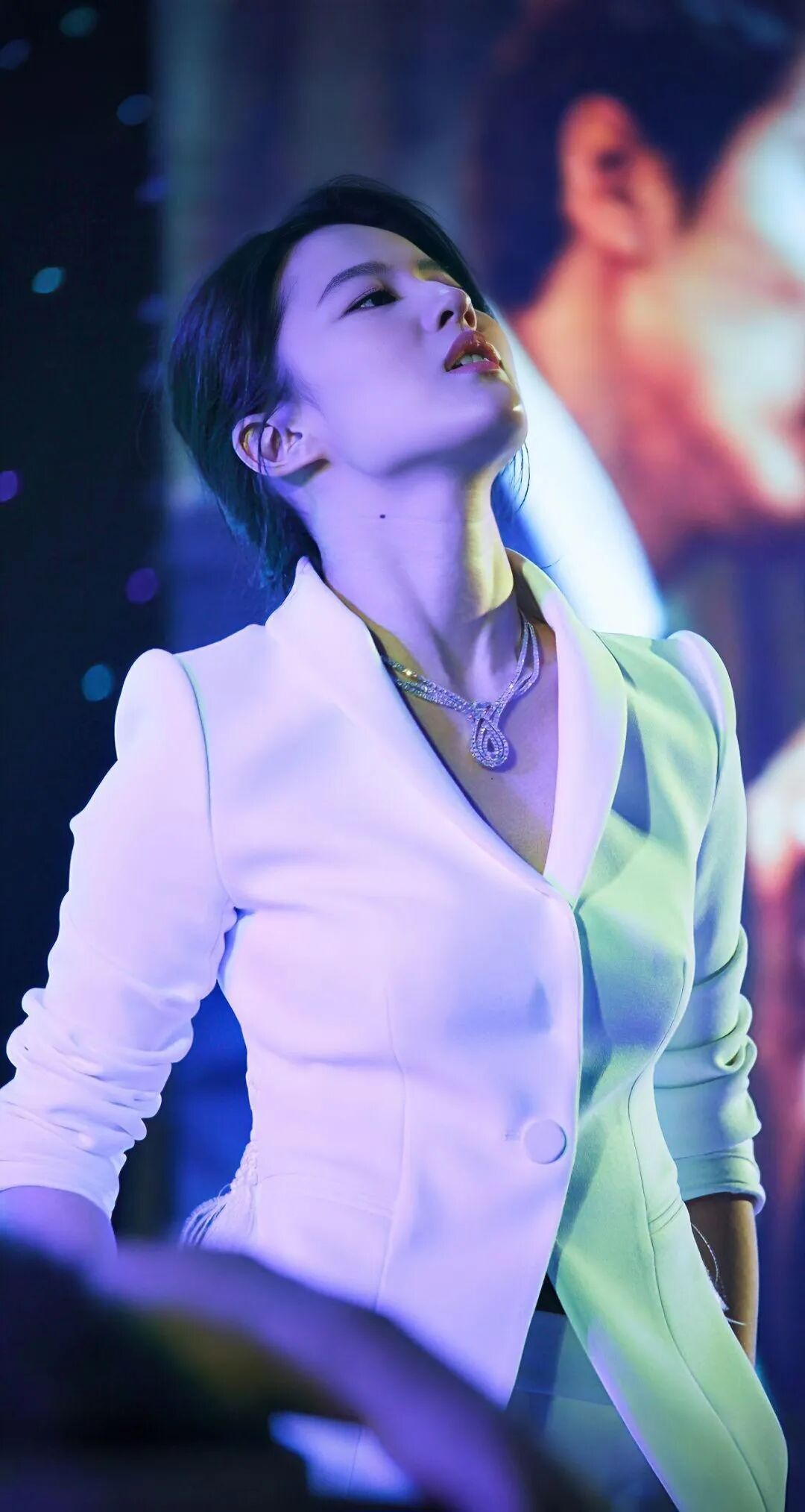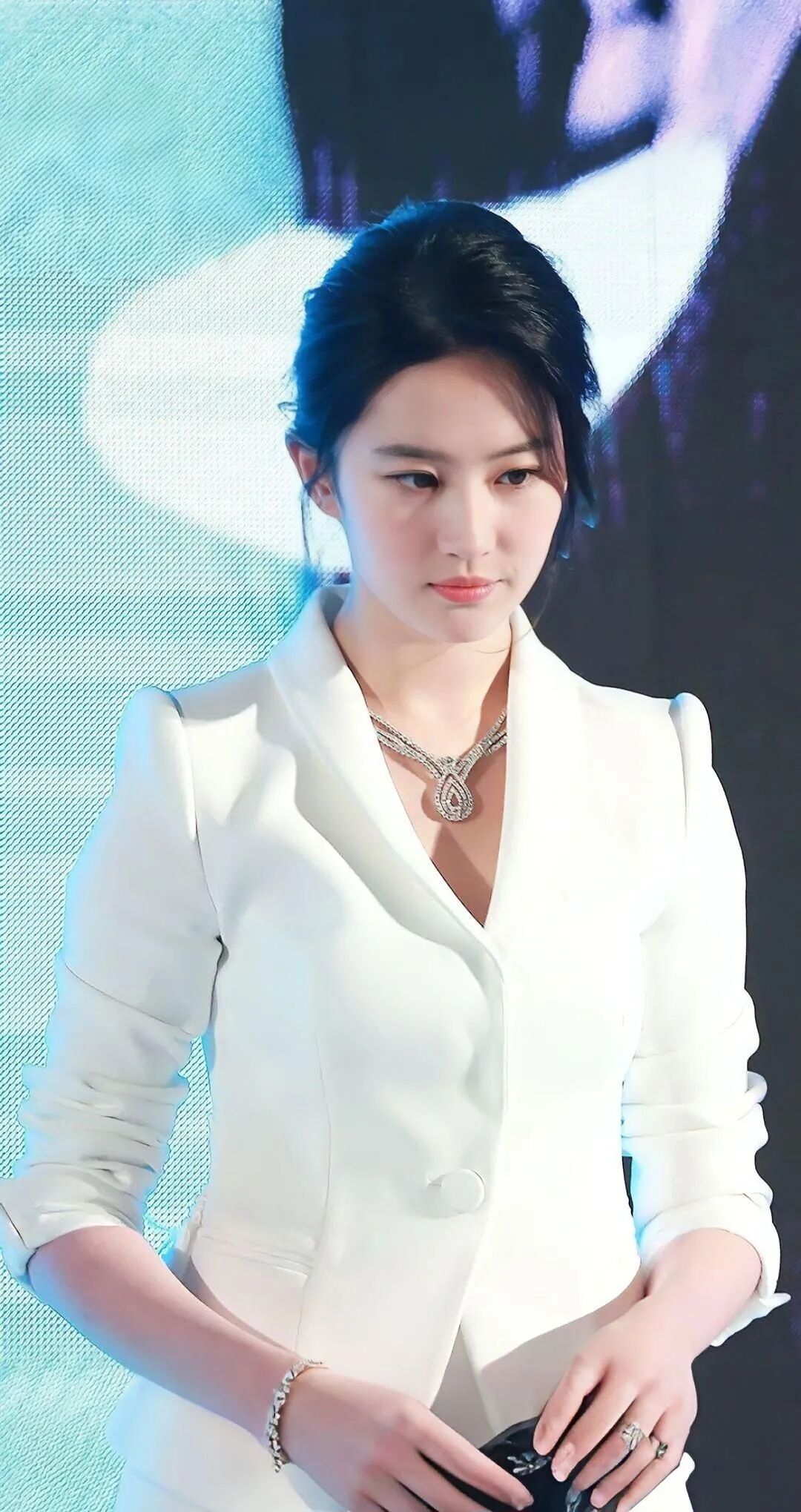 刘亦菲身着白色西装,温柔的眼神,独特的气质,有着职场女性的干练,又有着不失柔情的风情。