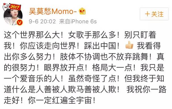 吴莫愁又在微博撕了一条: