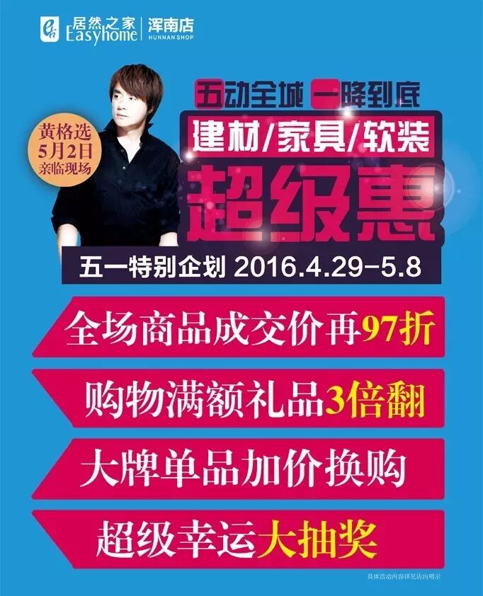 【五一·超级惠】浑南居然之家力邀歌手【黄格选】明天(5月2日)现场献唱,购物尊享超级惠!五一装修一站就够,浑南居然之家满足你全部需求!
